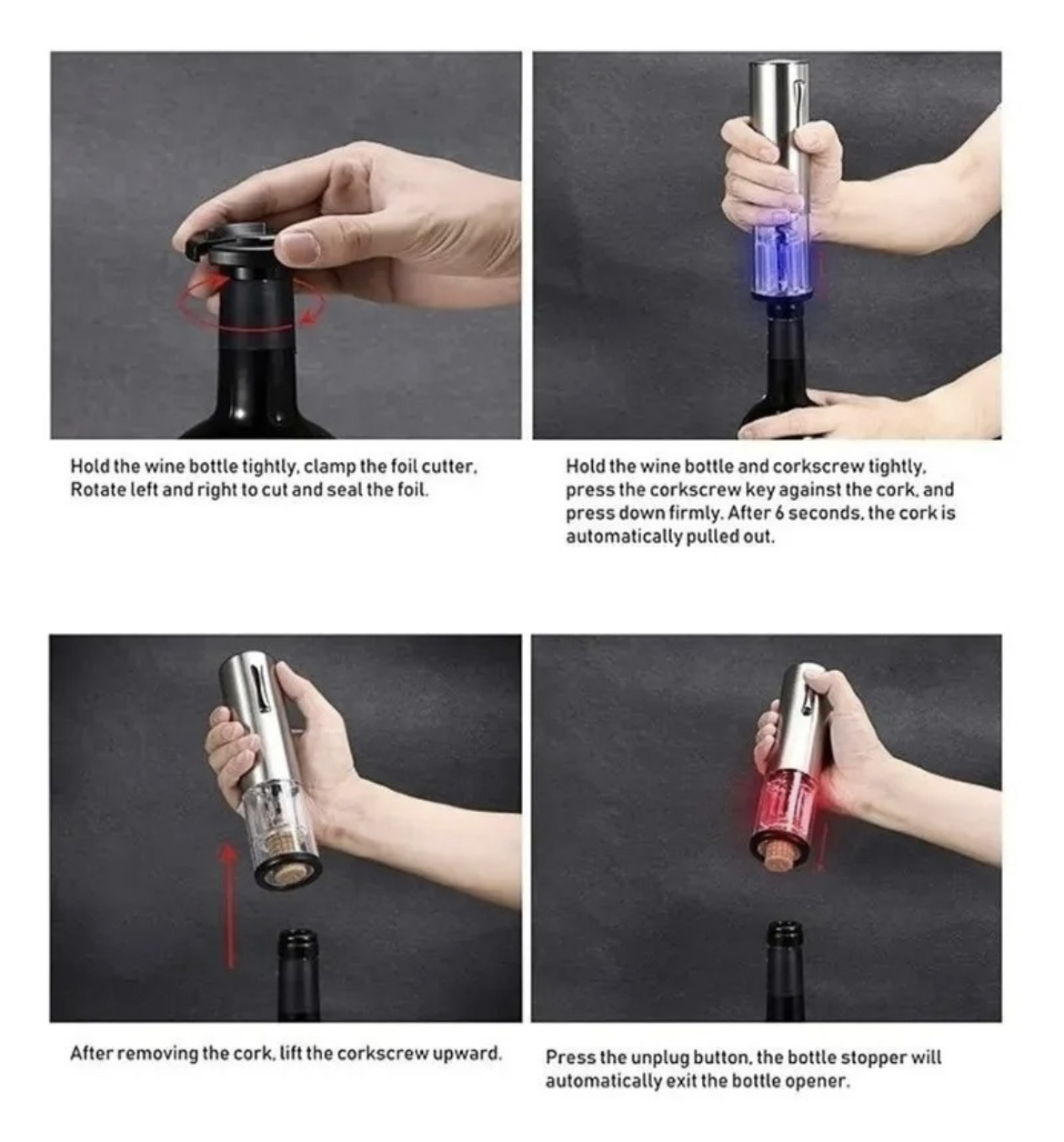 Retira fácilmente los corchos en segundos] Potente abridor eléctrico de vino, funciona para la mayoría de tamaños de botellas de vino. Presiona los botones Abajo y Arriba para quitar el corcho en 7 segundos sin romper el corcho. Hay un práctico diseño de carga USB y sin adaptador de carga.