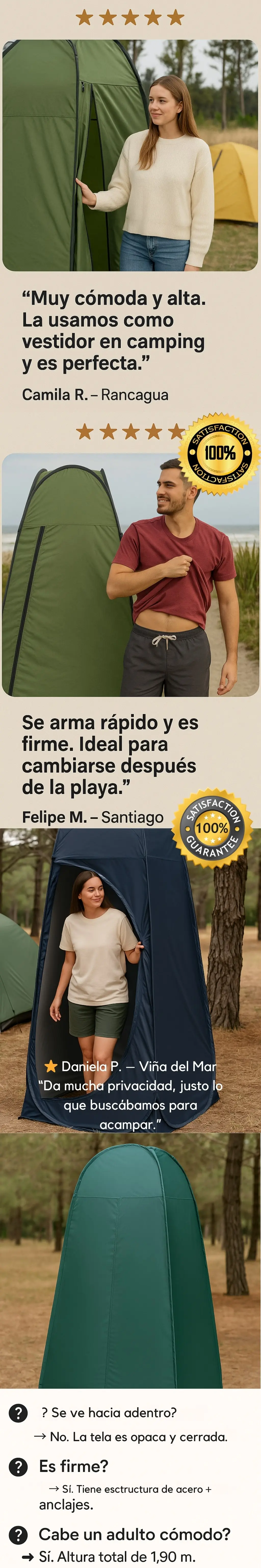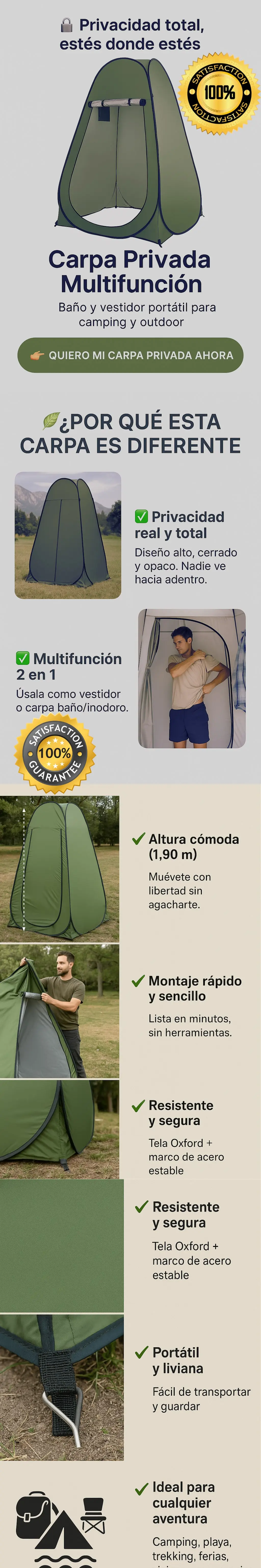 Da mucha privacidad y también sirve como baño. Justo lo que necesitábamos para acampar tranquilos.