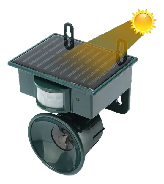 - Repelente de aves ultrasónico para exteriores, Sensor de movimiento PIR, altavoz de voz inteligente Solar, ahuyentador de aves, ahuyentador de animales salvajes, herramienta para ahuyentar.